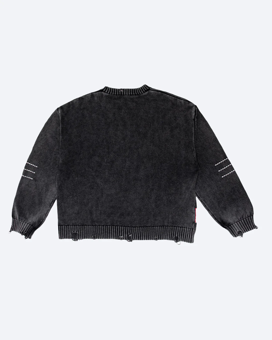 - Distressed detailing across collar, sleeve and body cuffs